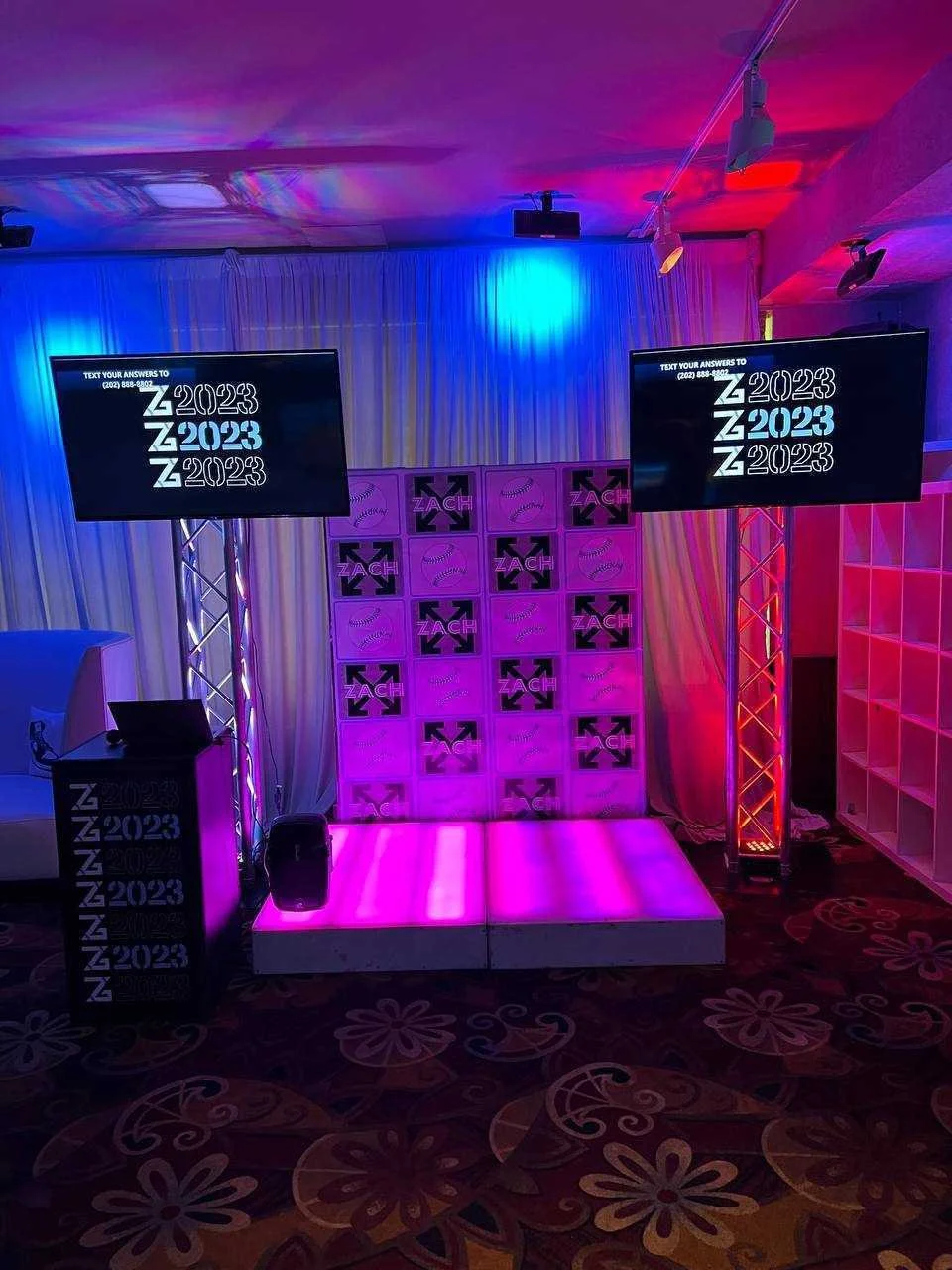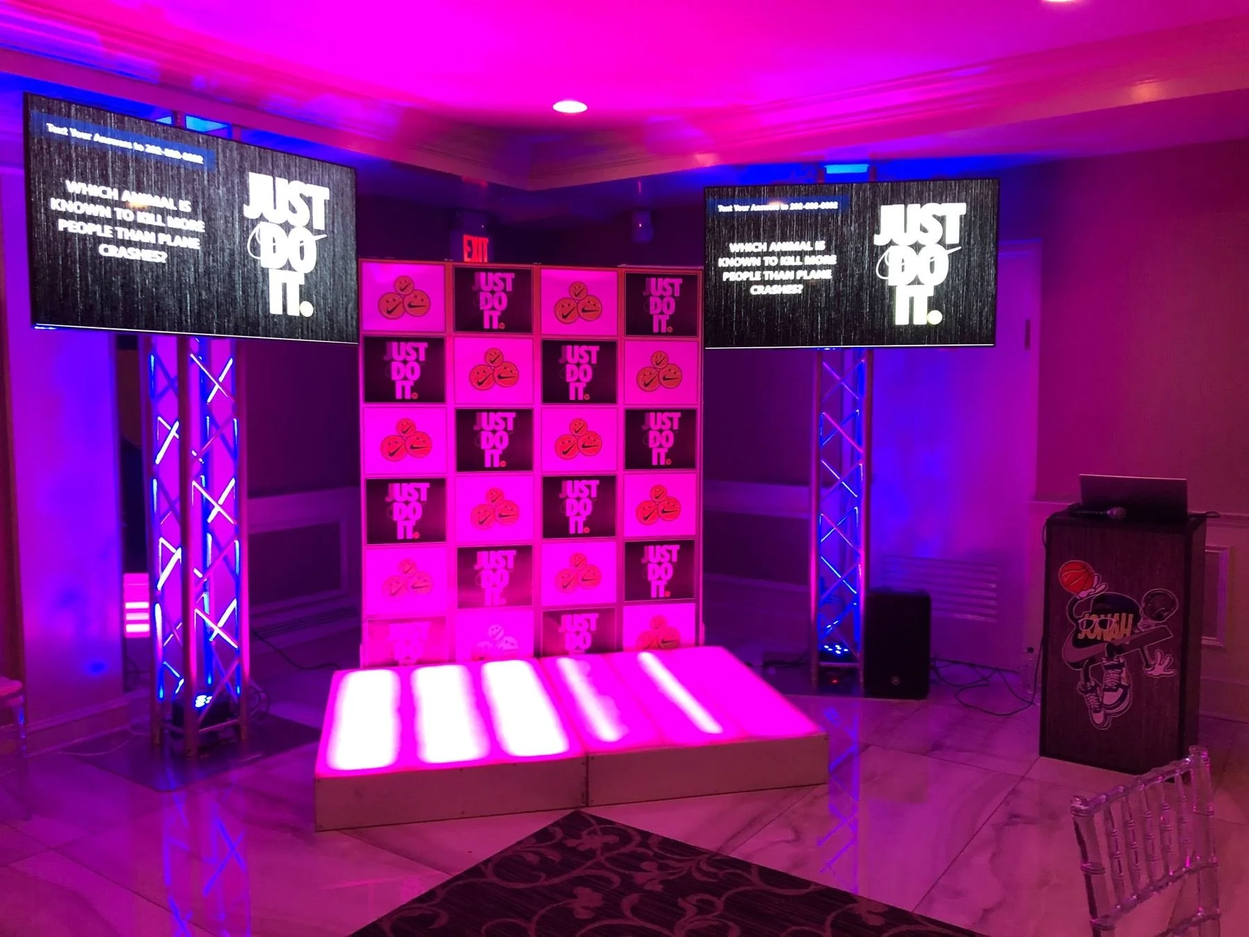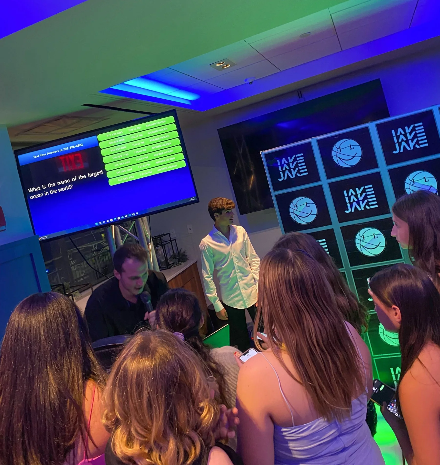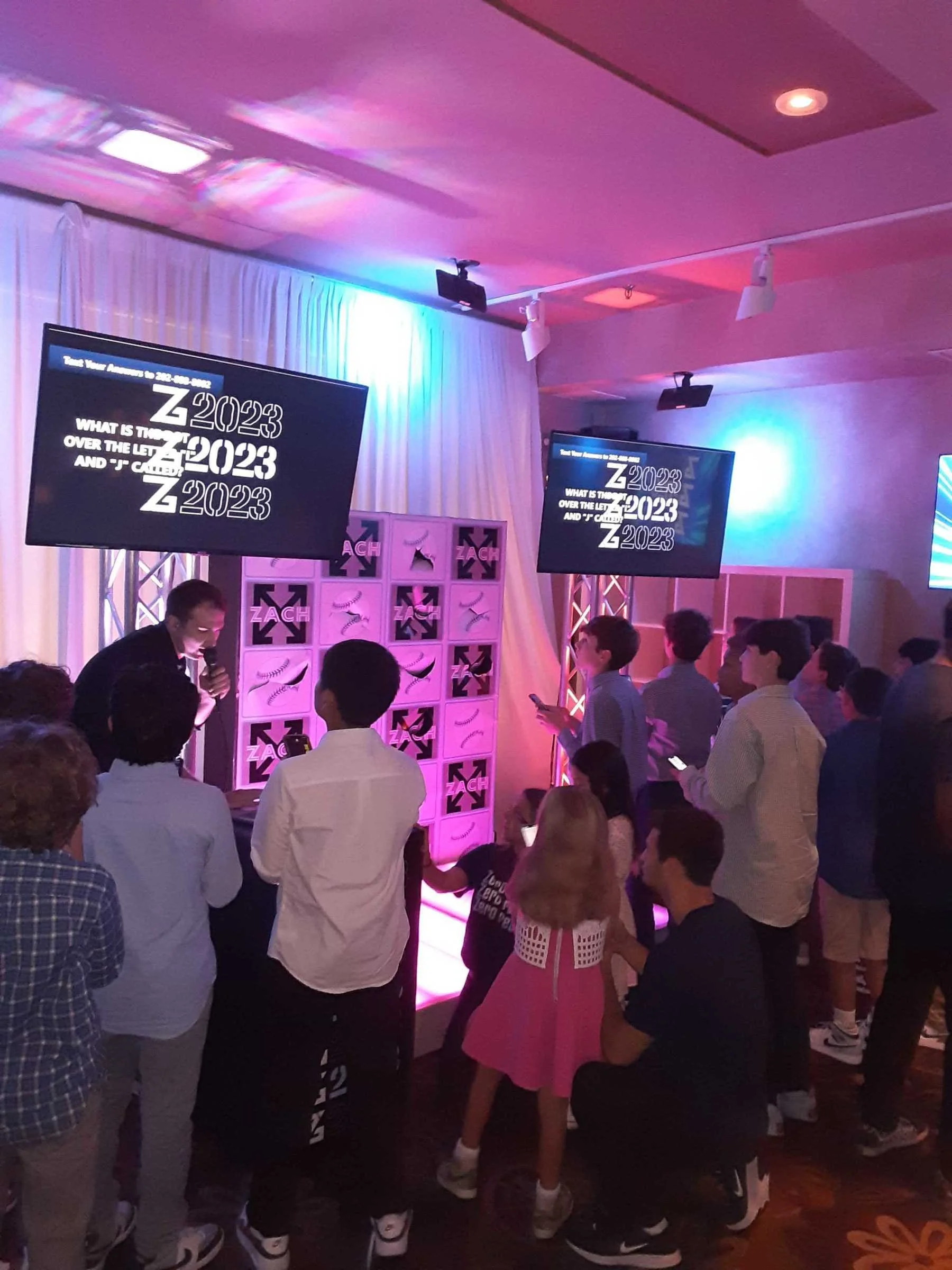 Add high-energy excitement to your next event with Text-a-Punch. A hybrid game show experience that combines text-based trivia with a physical punch-to-play platform. Perfect for bar and bat mitzvahs, school events, Sweet 16s, and corporate parties in NYC and Connecticut, this interactive game lets players answer live trivia questions by punching in answers on a digital stage. With real-time scoring, crowd participation, lighting effects, and full branding options, Text-a-Punch brings the perfect mix of competition and fun to any celebration. Nicholson Events provides complete setup, emcees, and production support.